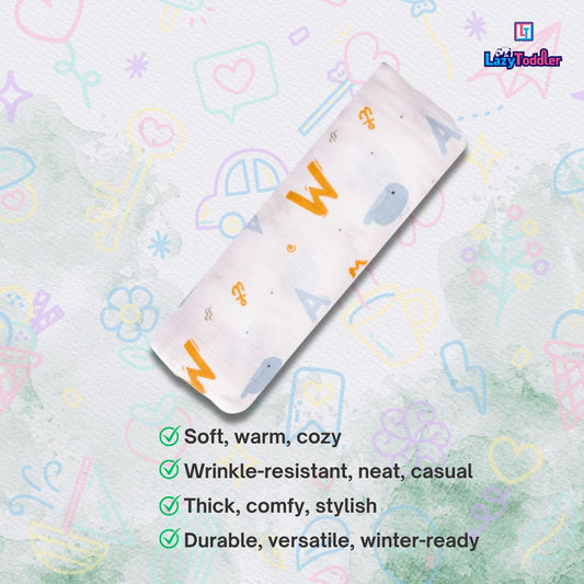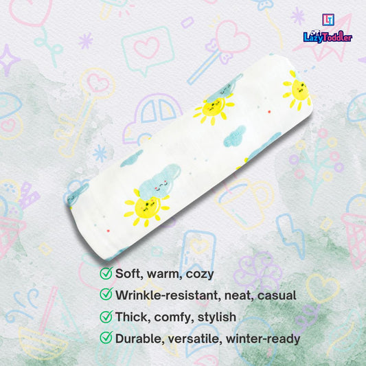 Gift your baby the warmth of motherly embrace with the comforting Muslin Baby Swaddles by Lazy Toddler. Wrap your toddler gently with our swaddles and watch their tender self fall into deep sleep in no time!