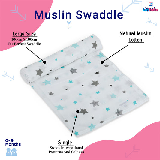 Muslin Essential Swaddle Wrap Single – Blue Star