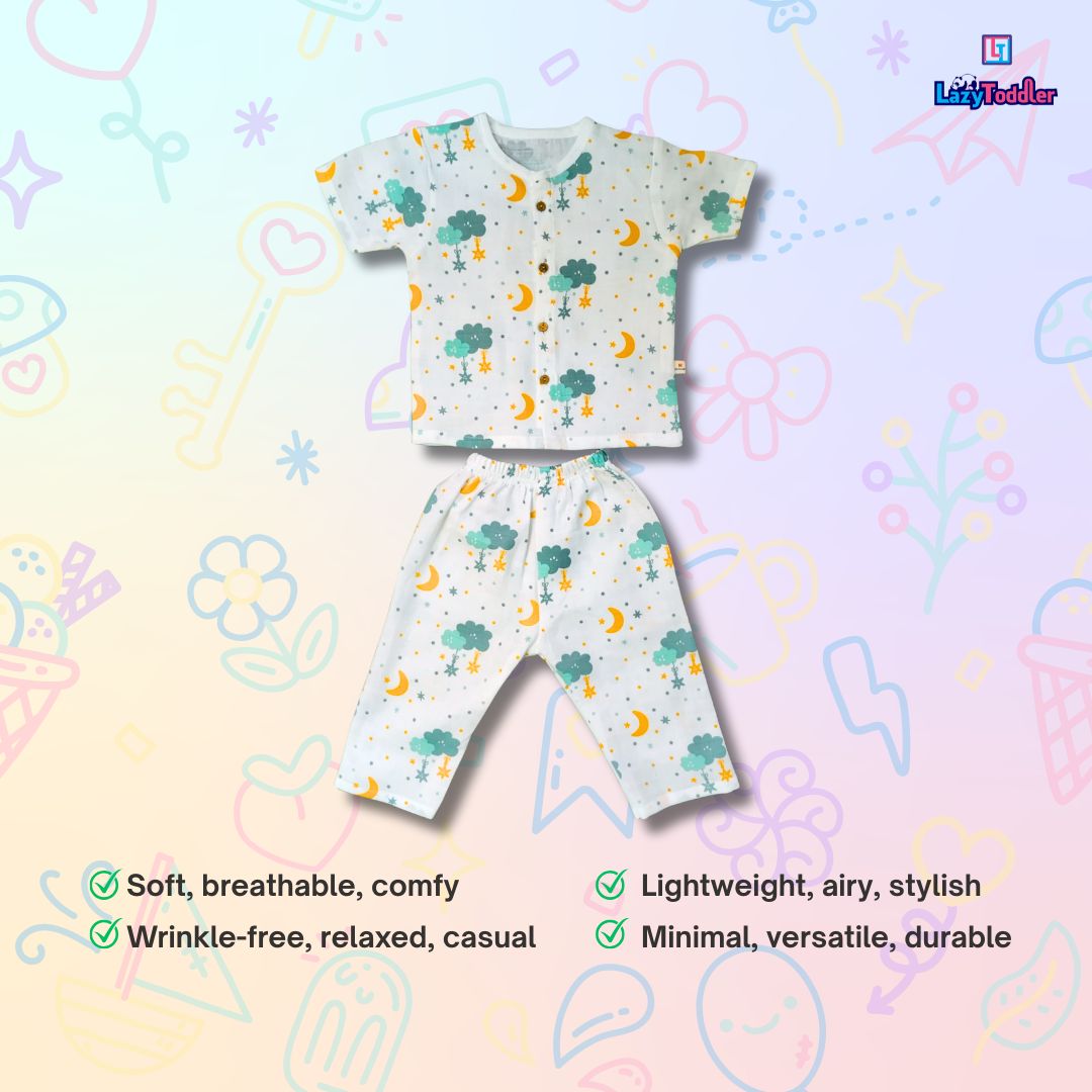 LazyToddler Muslin Half Shirt and Full Pant Set (Cloud)