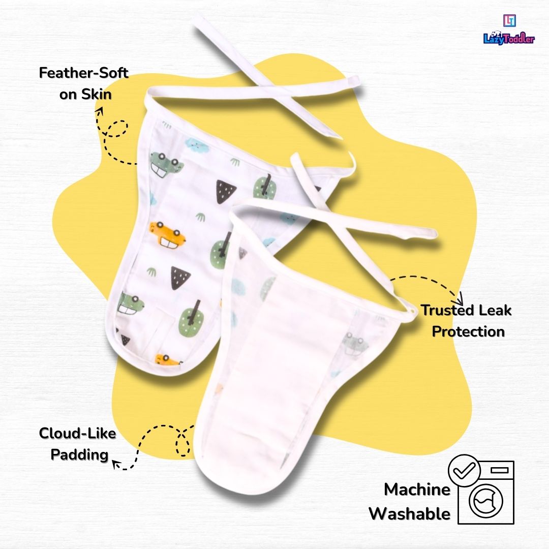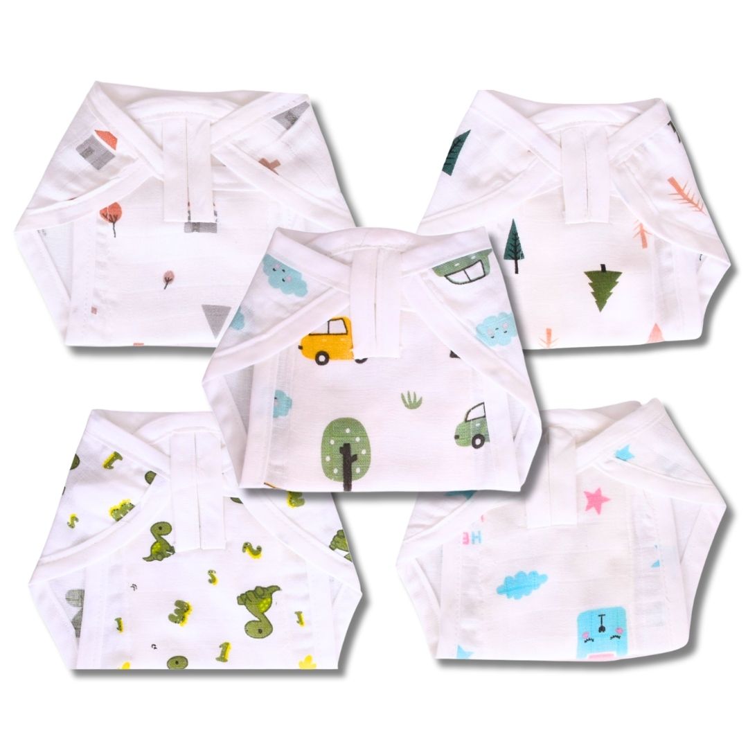 Lazytoddler Muslin Padding Nappy (Dino) – Pack of 5
