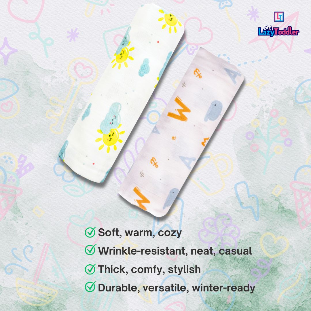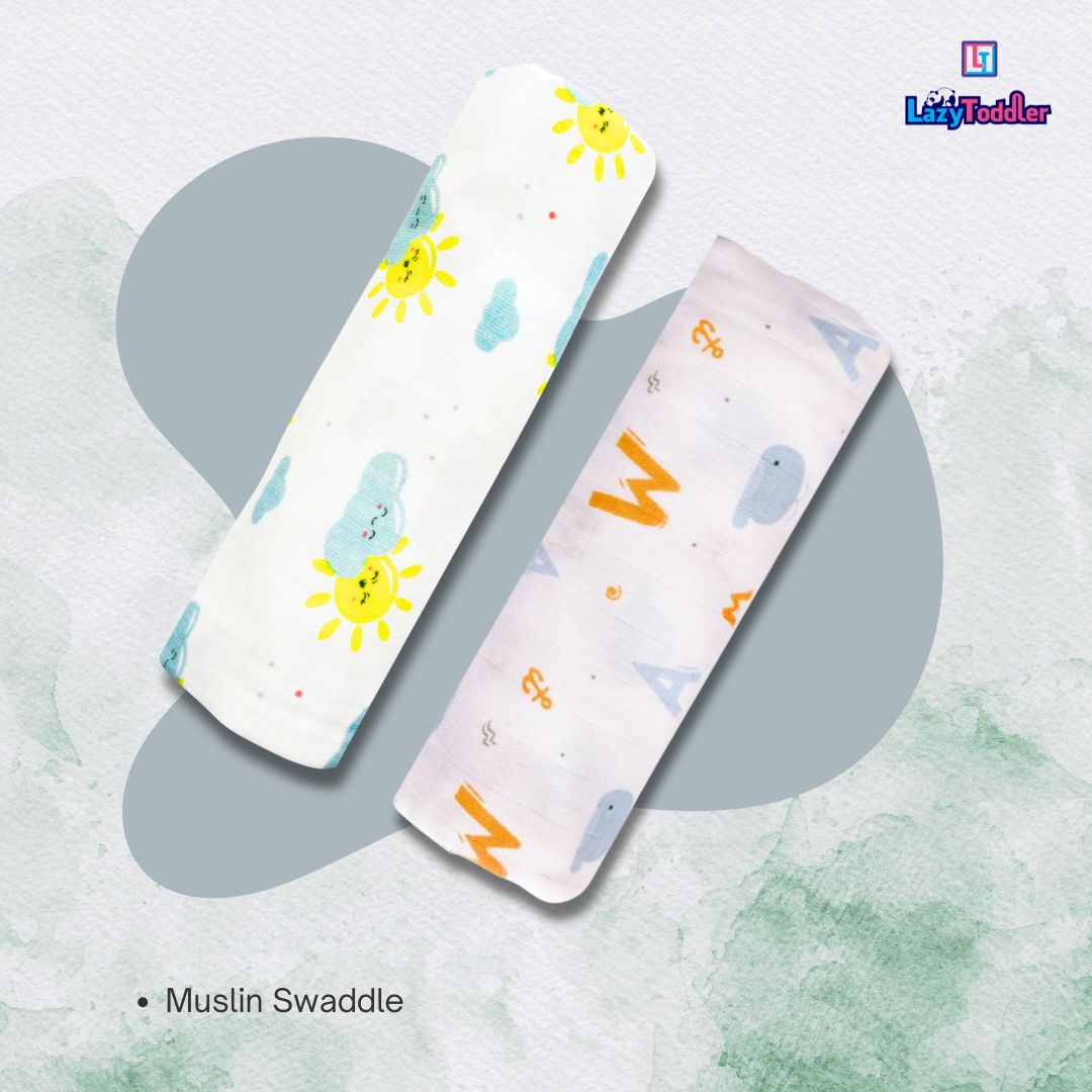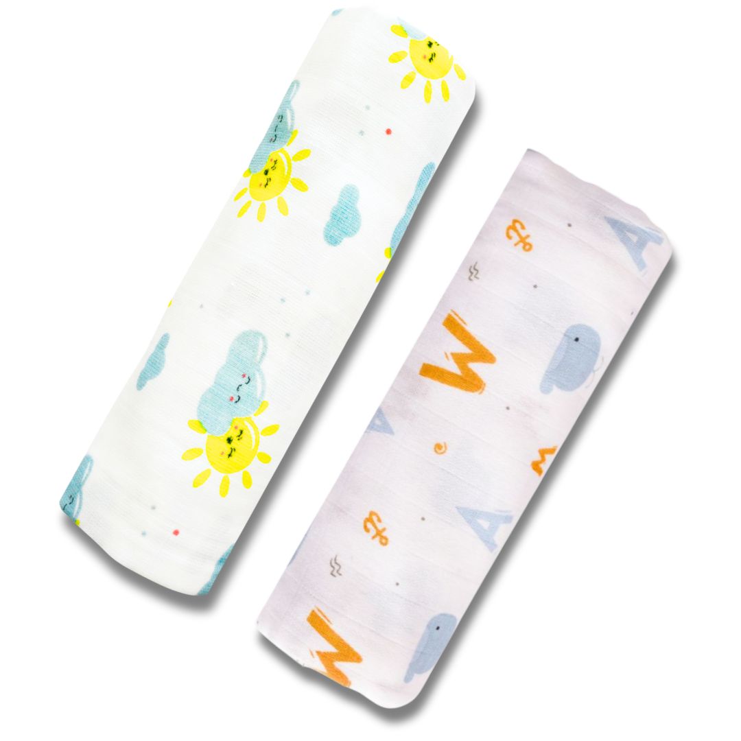 Lazytoddler Muslin Swaddle Printed Design (Sun & Alphabet) Set of 2