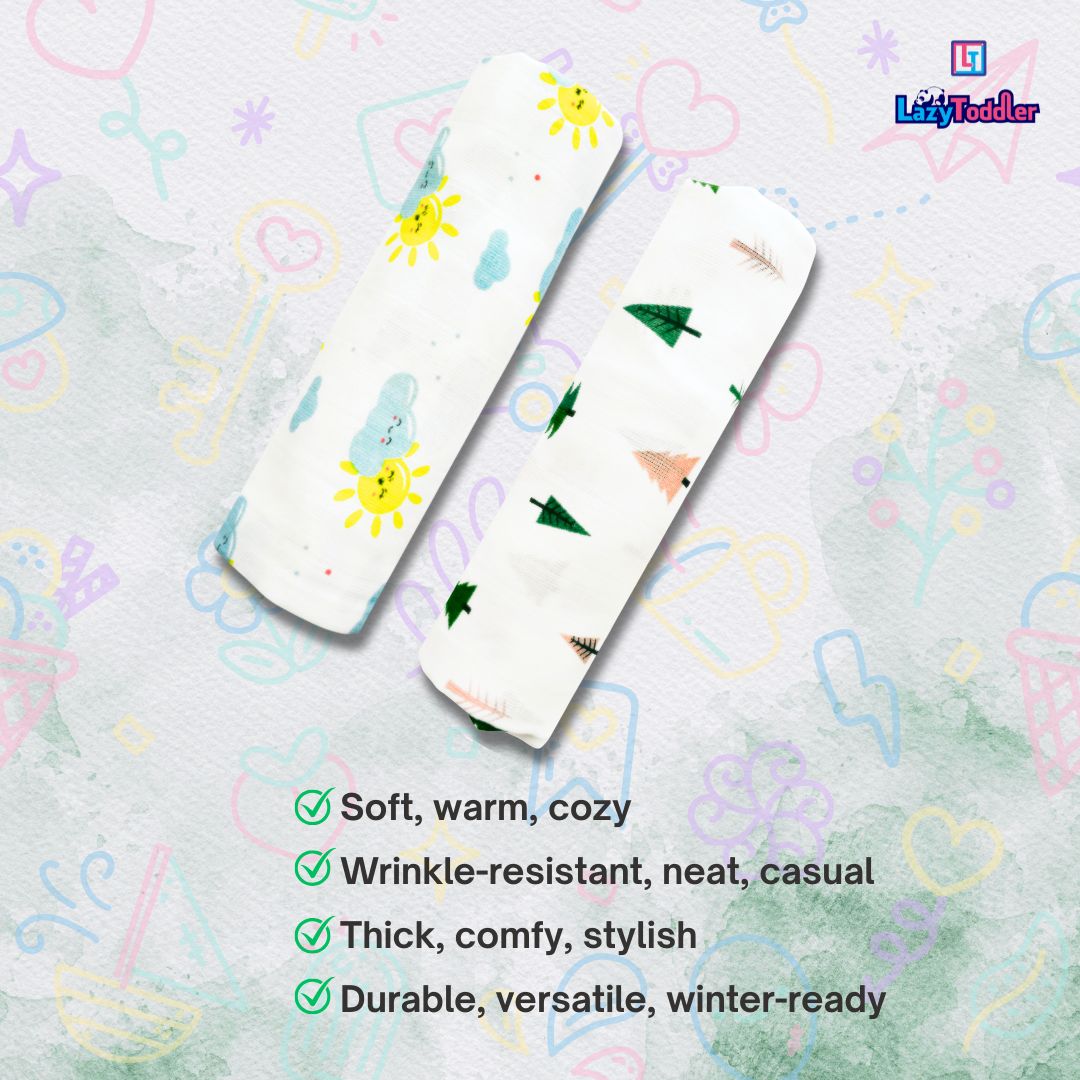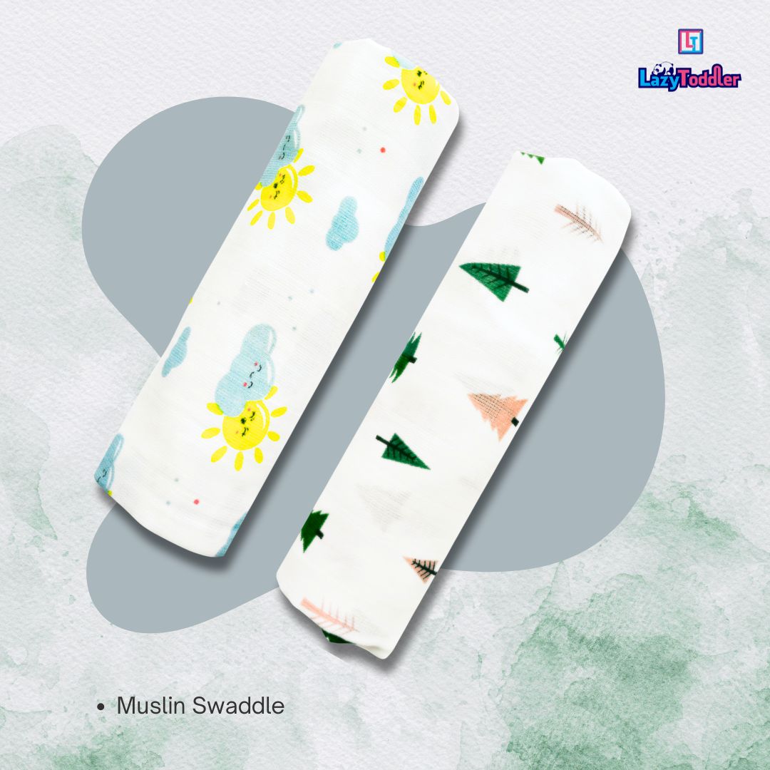 Lazytoddler Muslin Swaddle Printed Design (Sun & Tree) Set of 2