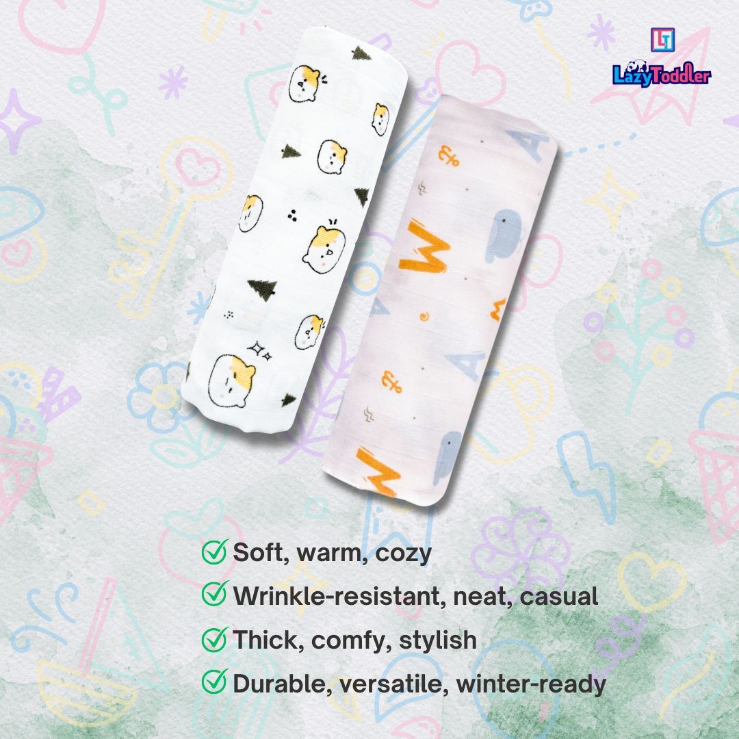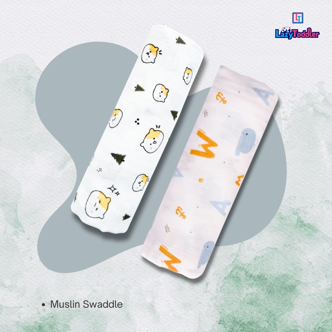 Lazytoddler Muslin Swaddle Printed Design (Teddy & Alphabet) Set of 2