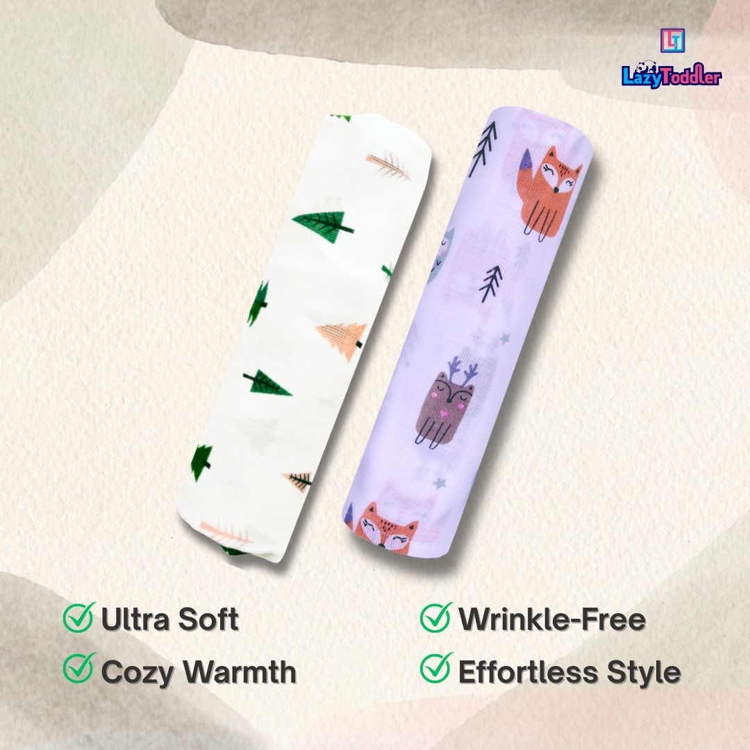 Lazytoddler Muslin Swaddle Printed Design (Teddy & New Star ) Set of 2