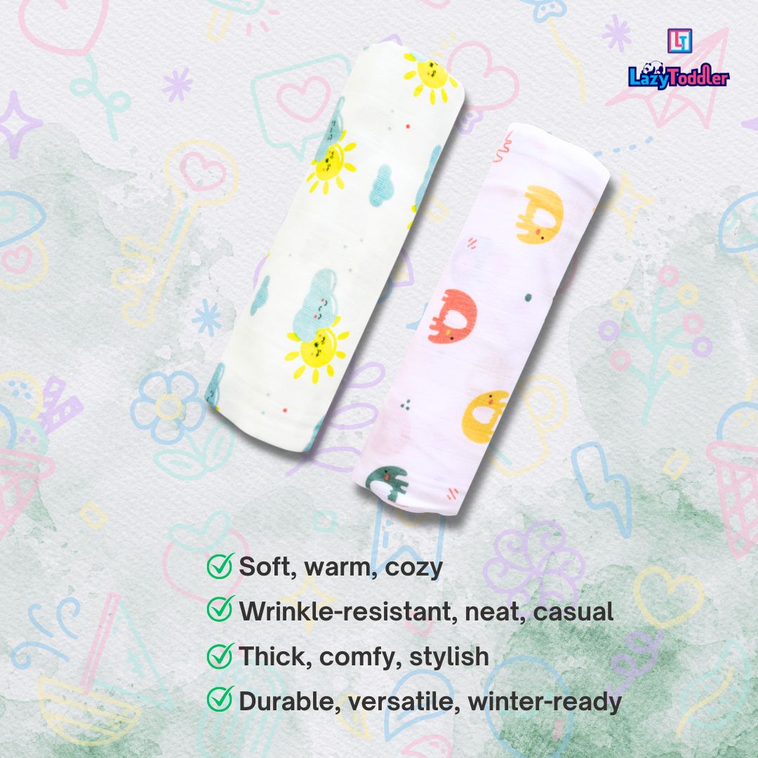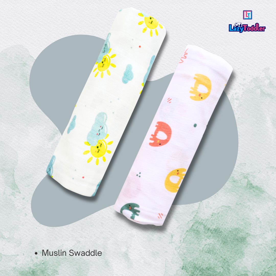Lazytoddler Muslin Swaddle Printed Design (Sun & Elephant) Set of 2