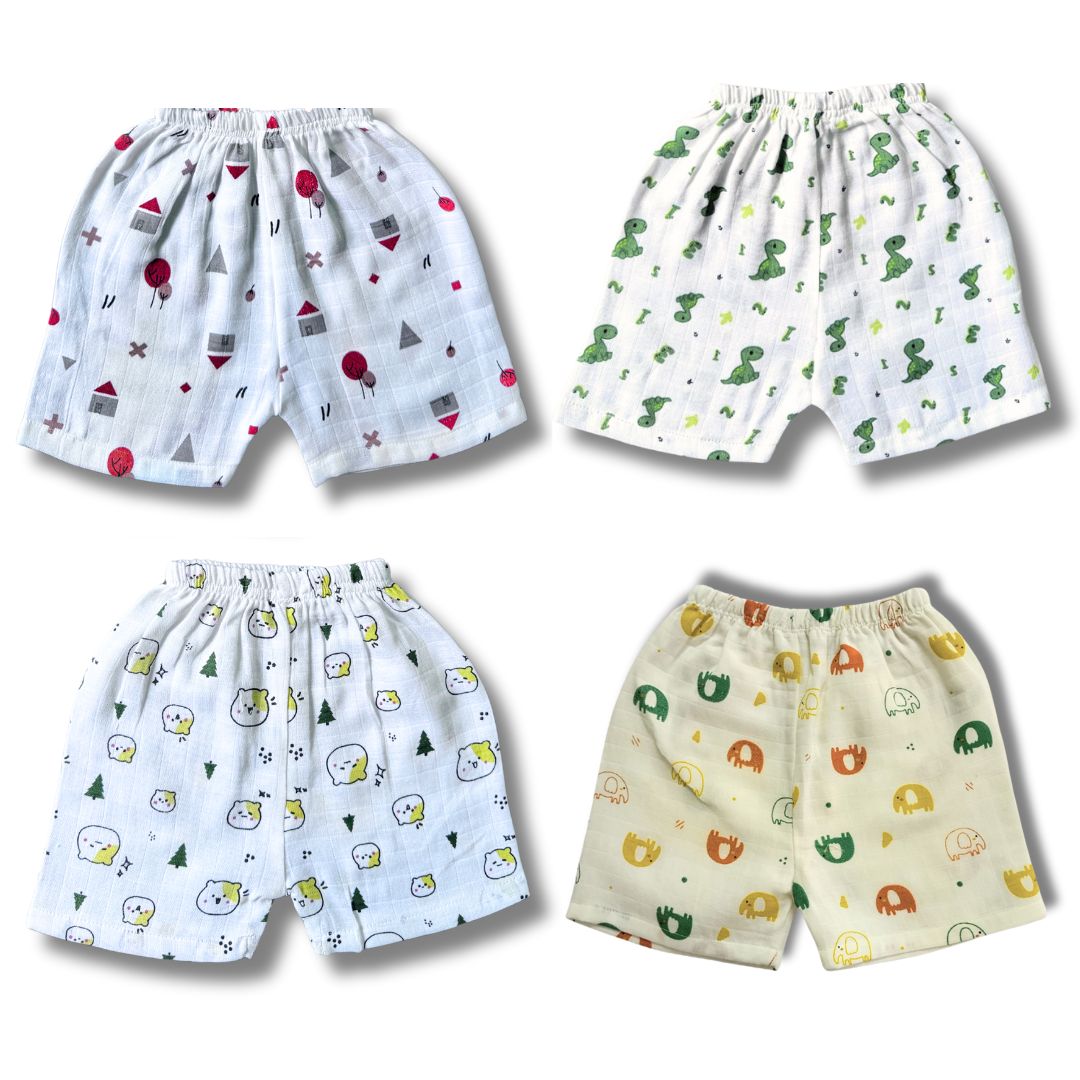 LazyToddler Summer Essential Pack of 4 Pure Muslin Cotton Shorts for Toddlers Infants
