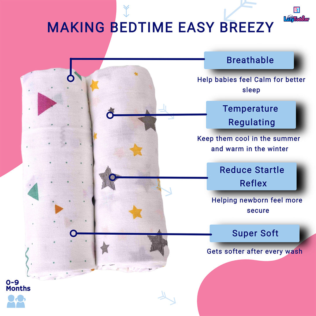 Our Muslin swaddle is designed to provide comfort and security to your little one. Wrap your baby in pure softness. Our high quality 100% cotton muslin with cheerful designs gets softer with every wash.