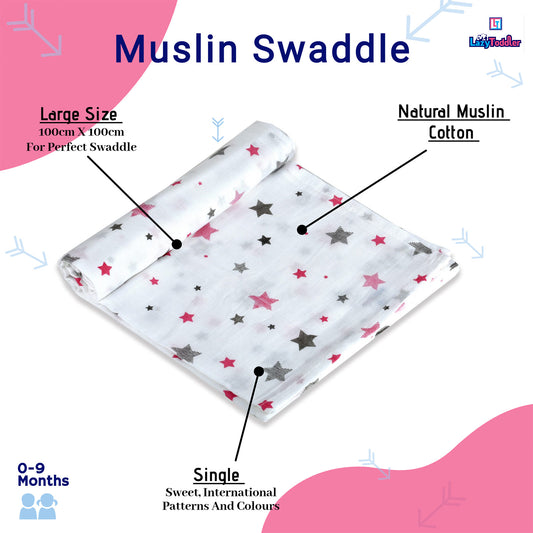 Muslin Essential Swaddle Wrap Single – Pink Star